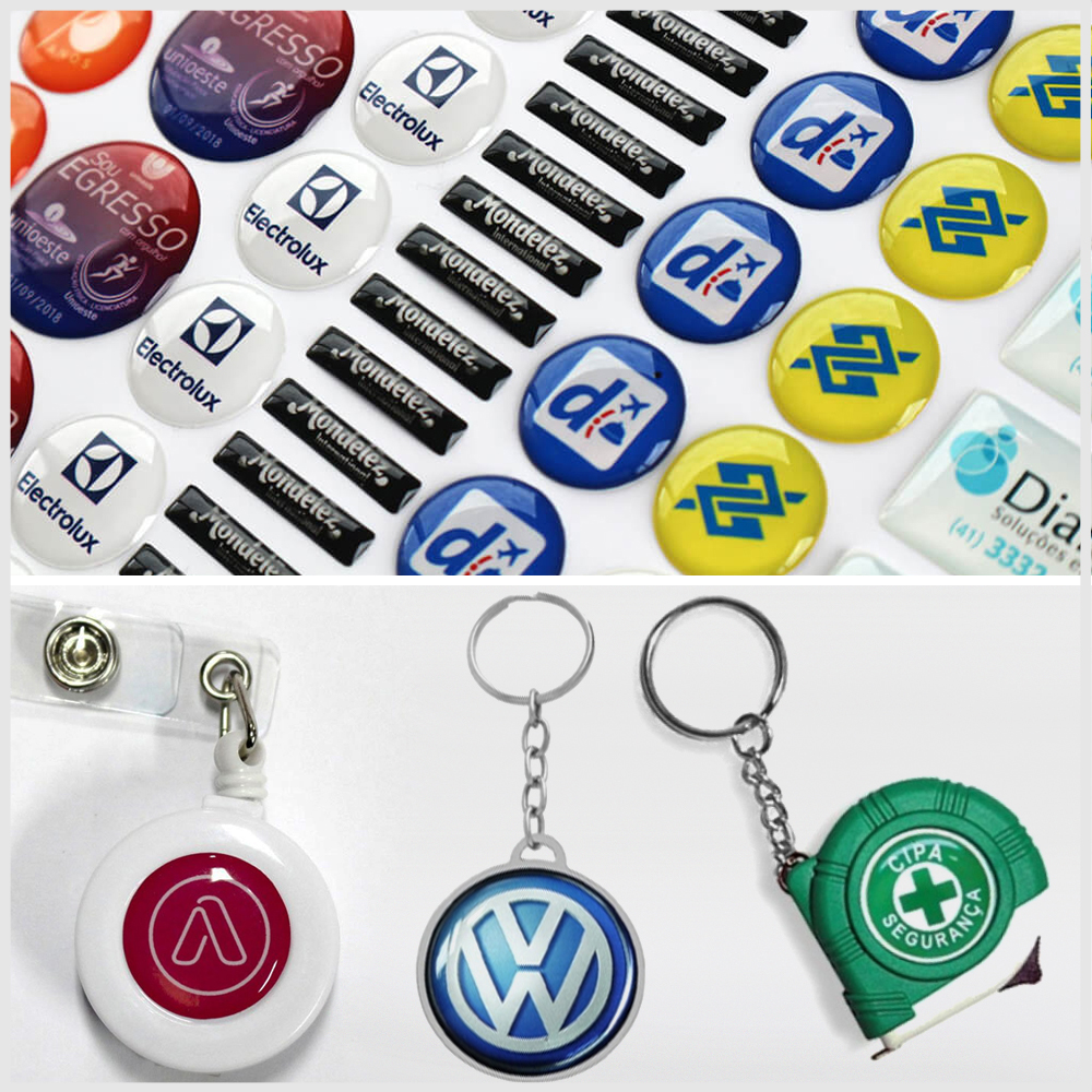 A personalização com etiqueta resinada é mais uma opção para a personalização de seus brindes. A etiqueta resinada é uma técnica de personalização em que um adesivo impresso é coberto com uma camada de resina epóxi, criando um efeito 3D brilhante e durável. A resina é aplicada sobre o adesivo impresso, protegendo o design e proporcionando uma superfície lisa e resistente. O resultado é um adesivo com alto brilho, resistência ao desgaste e uma aparência profissional sem limites de cores de gravação.
