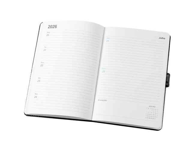 - Diferenciais: Miolo semanal funcional, capa personalizável e alto impacto de marca