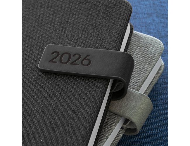 Agenda B5 em PET (100% rPET).Agenda com fecho magnético em PU, marcador em fita e suporte para esferográfica (não inclusa). Está organizada num plano semanal. Fornecida com bolsa de non-woven. 175 x 245 mm