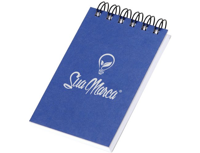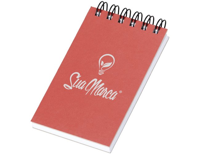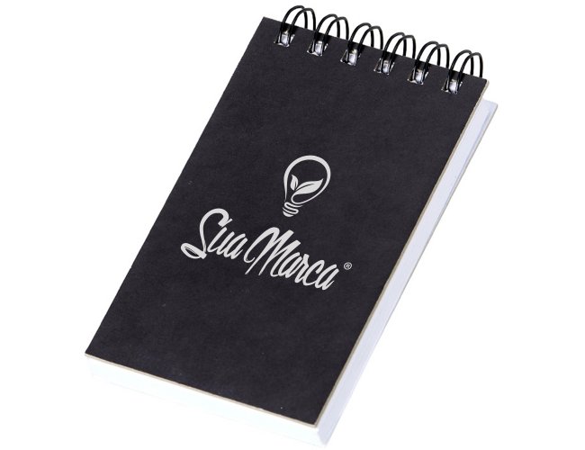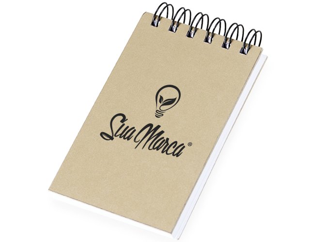 Bloco de Anotações Personalizado Kraft XV14836, ideal para brindes corporativos. Capa dura resistente em papel kraft, encadernação wire-o e aproximadamente 100 folhas brancas sem pauta. Um brinde elegante e funcional, perfeito para destacar sua marca em eventos e ações promocionais.