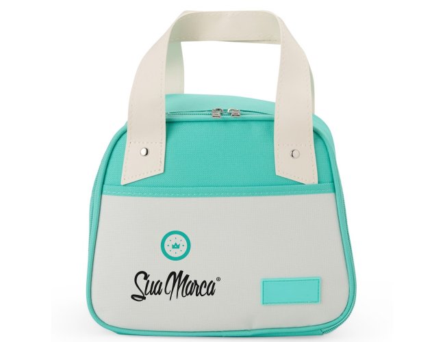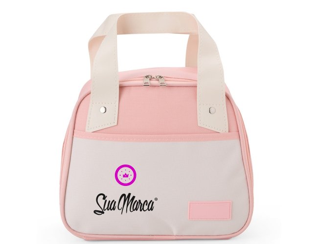 Bolsa Térmica Personalizada de Nylon 5L XV18867. confeccionada em produzida em nylon resistente à água e alças de couro sintético, que oferece um toque de charme à bolsa. Além disso, conta com um bolso frontal para guardanapos, talheres ou o que desejar, e ainda oferece espaço para personalização. MEDIDA: Altura: 18 cm X Largura: 22 cm X Profundidade: 14 cm. Peso aproximado (g): 176