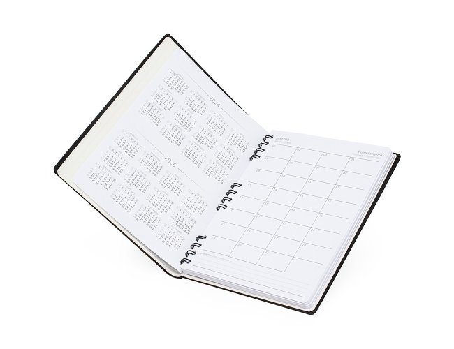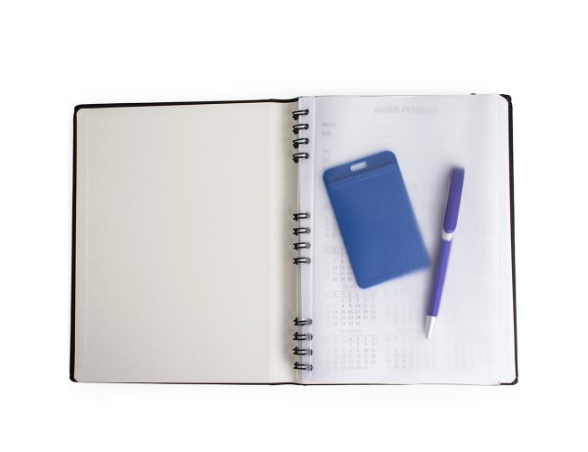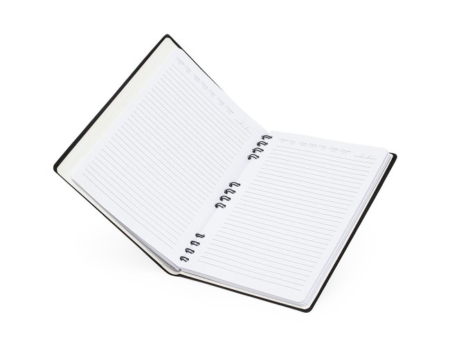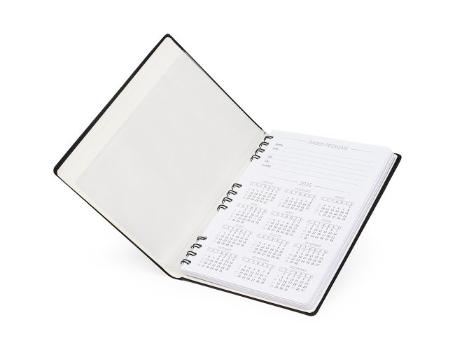 Caderneta Personalizada de Couro Sintético XV15156, confeccionada em couro sintético com capa dura, confeccionada em couro sintético e com wire-o metálico, possui espaços dedicados para dados pessoais, calendários de 2025 a 2026 e planejamento, além de áreas para anotar contatos importantes: nome, e-mail e telefone. O marcador de página facilita a localização das anotações, enquanto o fechamento com elástico garante que tudo fique seguro. Possui aproximadamente 90 folhas. MEDIDA: Altura: 25 cm X Largura: 19 cm X Espessura: 2,2 cm. Peso aproximado (g): 492