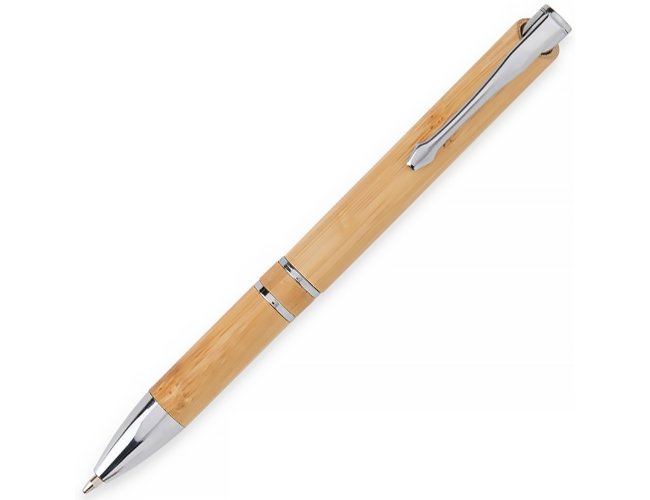 A Caneta Ecológica XV8250 é fabricada com bambu natural, um material renovável e sustentável, ideal para empresas com foco em responsabilidade ambiental.