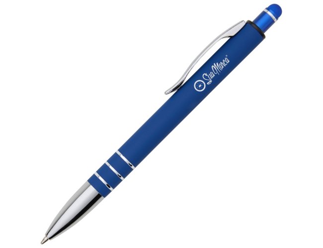 Caneta personalizada XV6087T em metal com acabamento emborrachado, ponta touchscreen e acionamento por clique. Carga esferográfica azul 1.0mm que oferece escrita suave e precisa. Um brinde corporativo moderno e funcional, perfeito para divulgar sua marca com estilo e inovação.