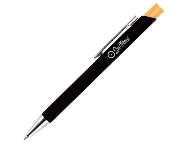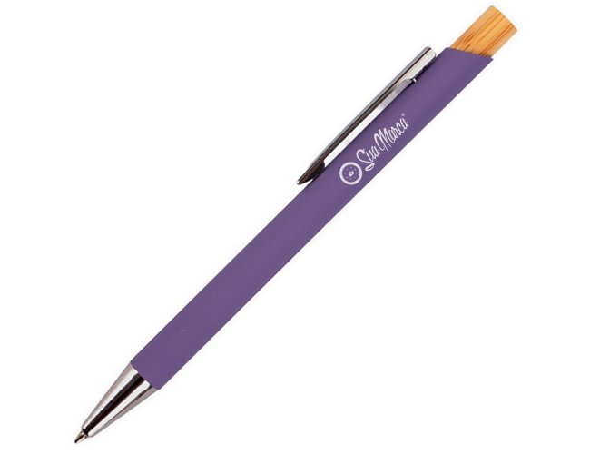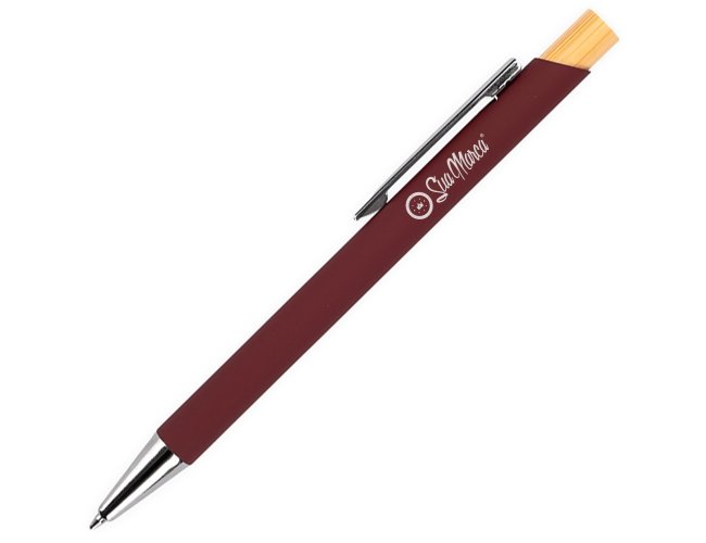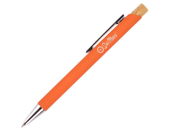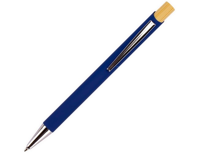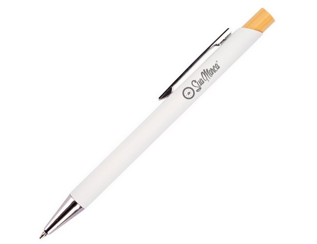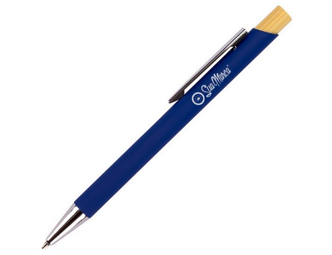 Caneta personalizada XV8170 com corpo metálico e acionamento em bambu, proporcionando pegada leve e confortável. Carga esferográfica azul 1.0mm para escrita precisa e suave. Brinde sustentável e sofisticado, ideal para empresas que valorizam inovação e responsabilidade ambiental.