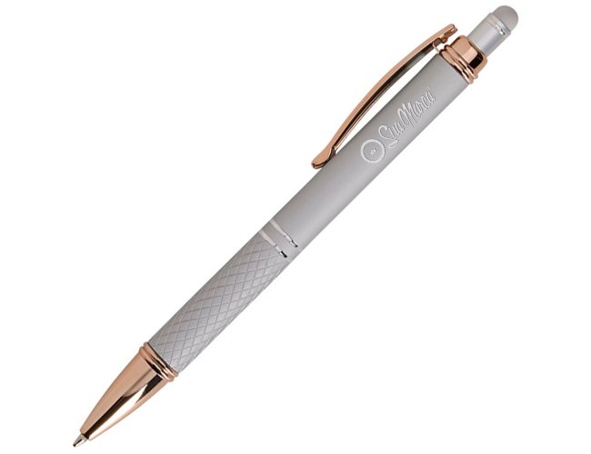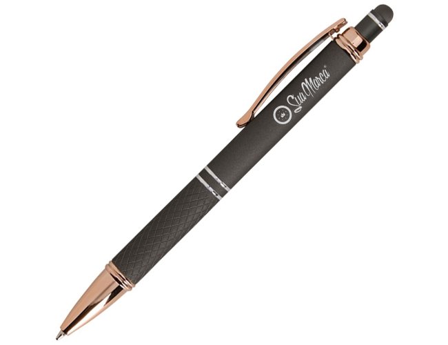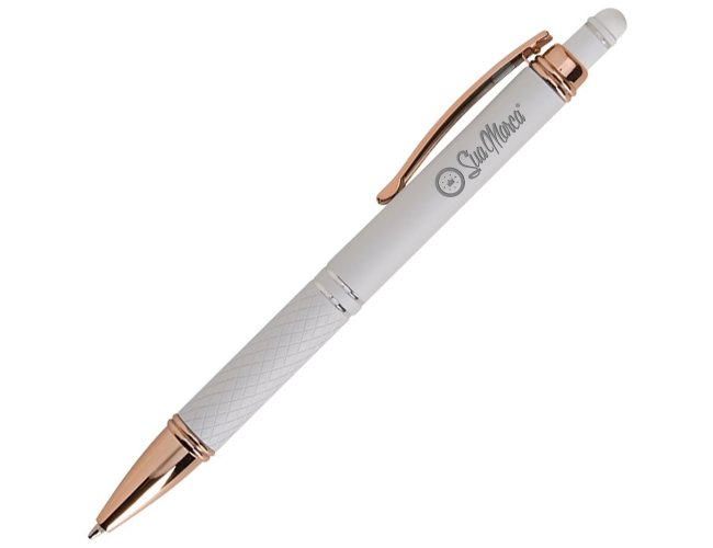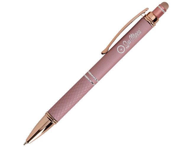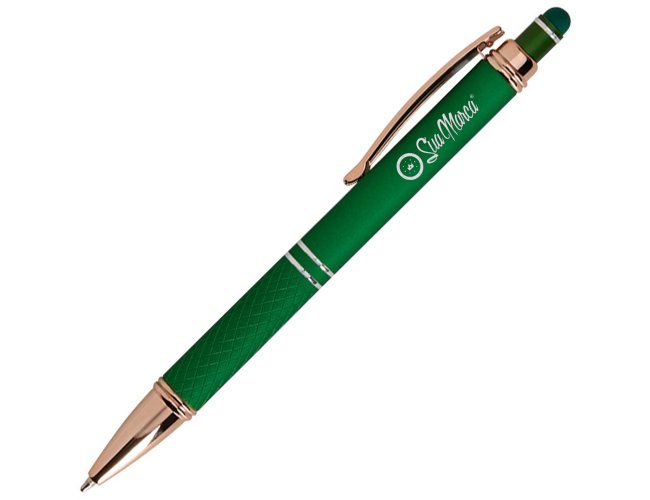 Seu mecanismo de acionamento é preciso e confiável, ideal para longas jornadas de anotações. A ponteira touch reduz trocas entre caneta e dedos na navegação de sistemas, agilizando aprovações e cadastros durante visitas ou feiras. Personalizada com gravação a laser, UV ou silk, a caneta mantém a identidade visual com excelente legibilidade, reforçando a presença da sua marca em cada interação. A disponibilidade em cores corporativas facilita o alinhamento às diretrizes de branding, preservando o tom institucional e a coerência do material promocional.