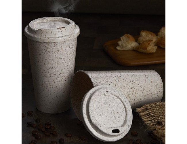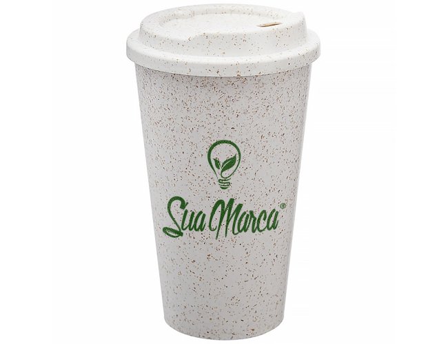 Copo Personalizado Eco 550 ml GV060: feito em fibra de arroz, é leve, moderno e uma ótima escolha para ações de sustentabilidade. A tampa rosqueável ajuda a manter a temperatura da bebida por mais tempo — perfeito para cafés, chás e bebidas quentes ou frias na rotina.