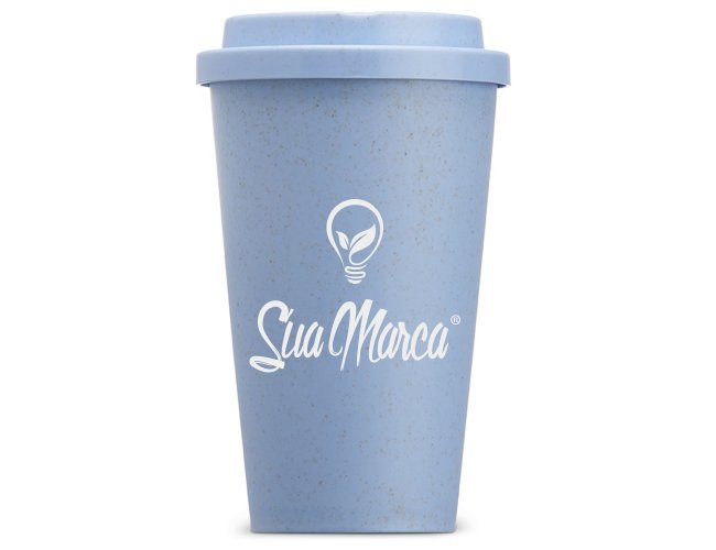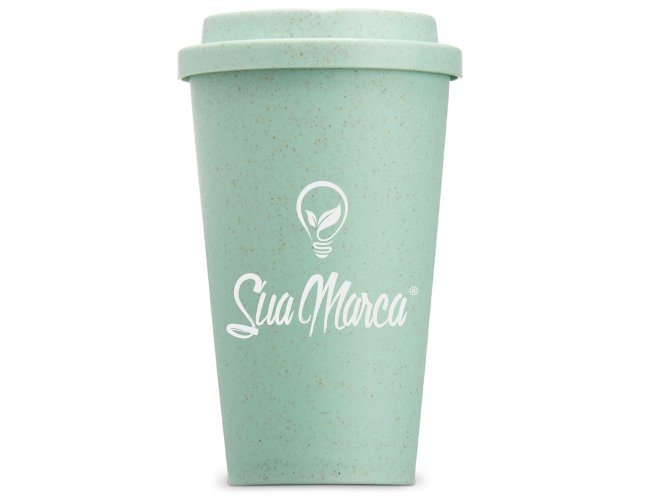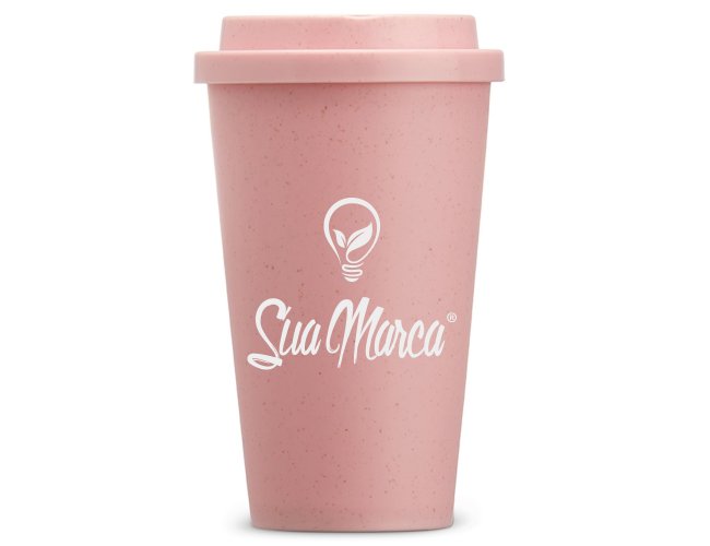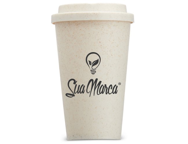 - O material do copo contém fibras naturais? Sim, sua composição inclui fibras que oferecem visual natural e leveza sem comprometer a durabilidade. O acabamento favorece o uso diário e realça a personalização da marca com ótimo contraste.