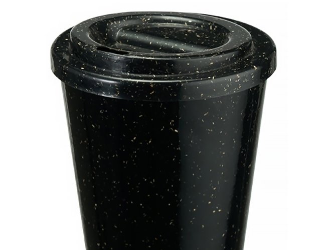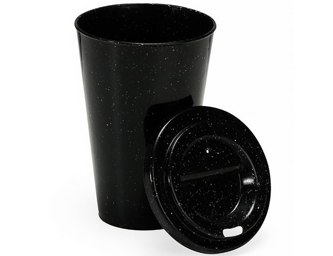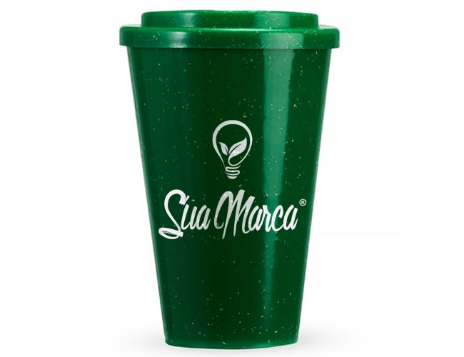 Copo feito em fibra de madeira com capacidade máxima de 450ml. Possui tampa com bocal.