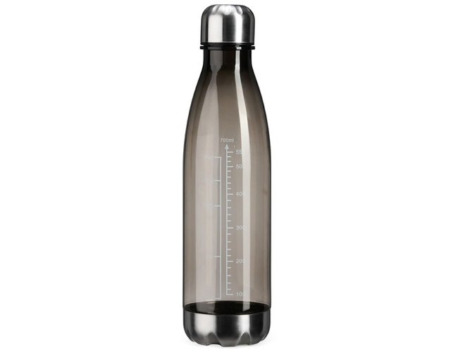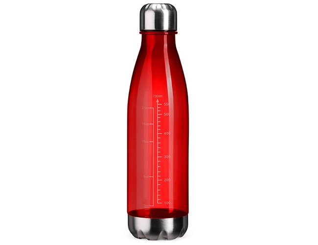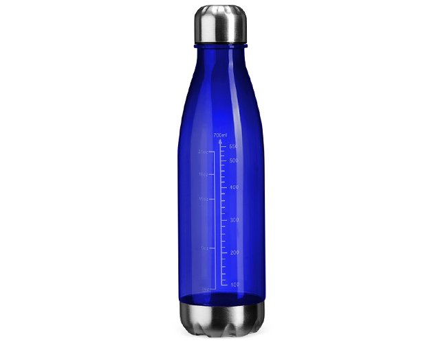 Garrafa Personalizada de Plástico 750ml XV17012A, confeccionada em plástico translúcido com capacidade máxima de 750ml e marcação de volume até 700ml. Conta ainda com base e tampa rosqueável em alumínio. MEDIDA: Altura: 26,7 cm X Largura: 7,1 cm X Circunferência: 22,4 cm. Peso aproximado (g): 95.