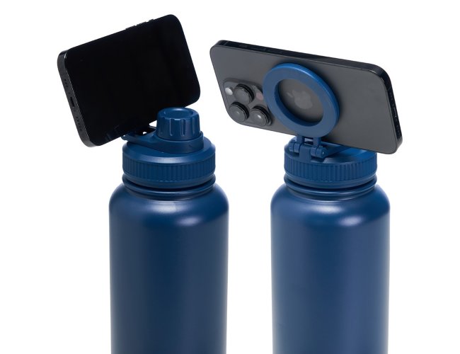 Garrafa Térmica Personalizada de Inox 1,2 L XV8198: parede dupla com isolamento a vácuo para conservar a temperatura por mais tempo, pintura eletrostática de alta durabilidade e tampa rosqueável que ajuda a evitar vazamentos. A alça circular magnética agrega praticidade e é compatível com iPhones que suportam fixação magnética.