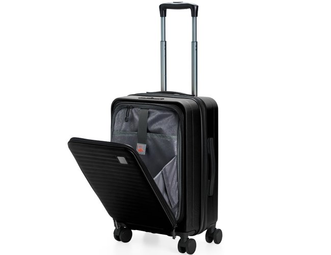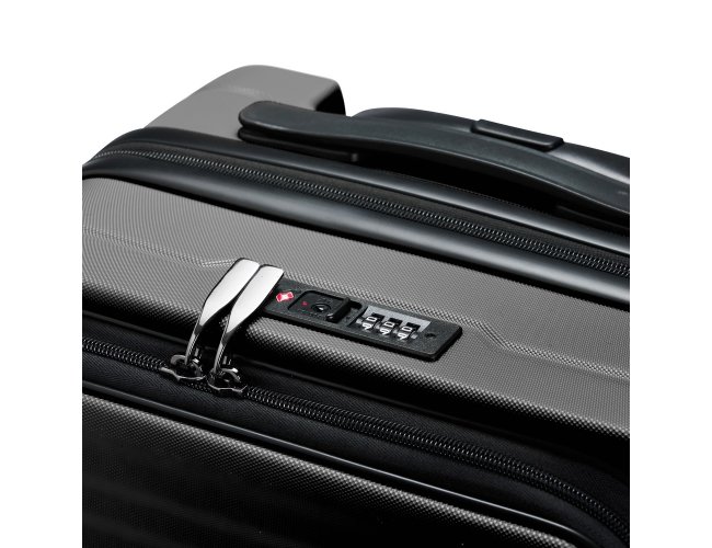 Mala de Bordo Personalizada de 32 Litros VX8216P, confeccionada em plástico ABS, conta com cadeado numérico TSA embutido para mais segurança. Abertura frontal com bolso para notebook de até 15.6, além de divisórias internas com zíperes e cinta compressora para roupas. Zíper externo expansível se encarrega de ampliar a capacidade da mala. Puxador retrátil de 3 estágios, duas alças de mão, apoios e ganchos laterais e rodinhas 360º. MEDIDA: Largura: 35,3 cm X Profundidade: 23,7 cm X Comprimento: 52,8 cm. Peso aproximado (g): 2907.
