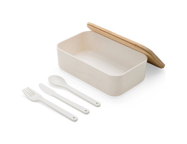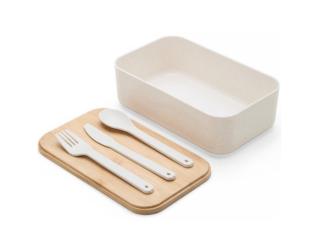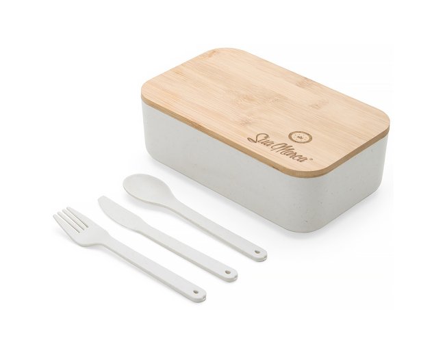 Marmita Personalizada de Fibra de Trigo XV6089, com tampa de bambu e capacidade de 1 litro. Possui elástico para um transporte seguro. Acompanha garfo, faca e colher. OBS: O tempo de aquecimento no micro-ondas não deve ultrapassar 3 minutos. MEDIDA: Marmita - Altura: 6,8 cm X Largura: 19,2 cm X Profundidade: 11,6 cm | (CxL): Garfo: 14,7 cm x 2,1 cm | Colher: 14,7 cm x 3,2 cm | Faca: 15,9 cm x 1,6 cm. Peso aproximado (g): 253