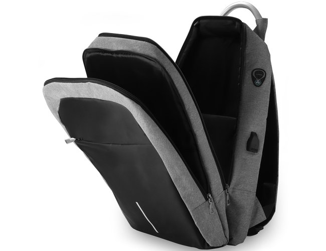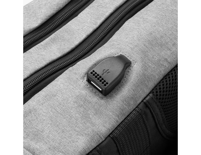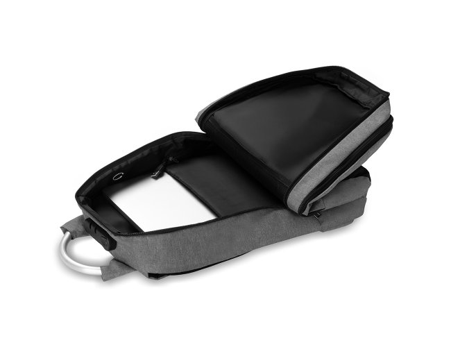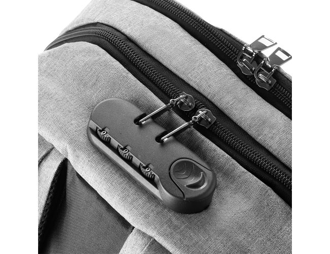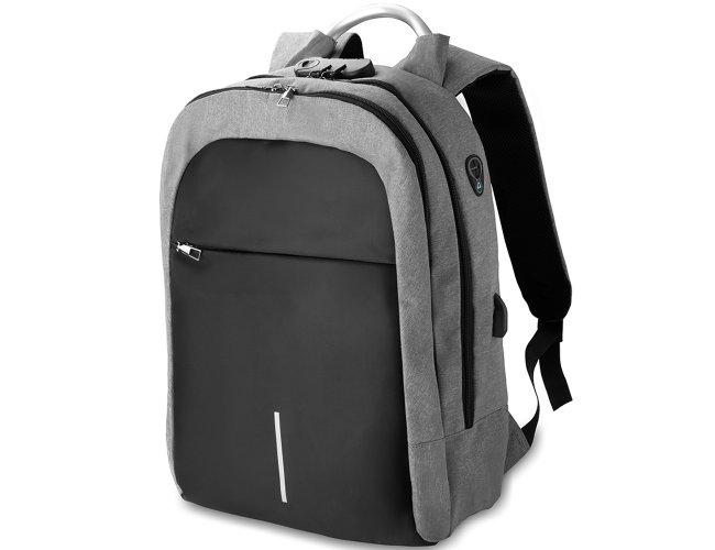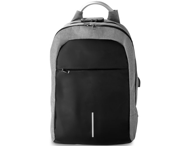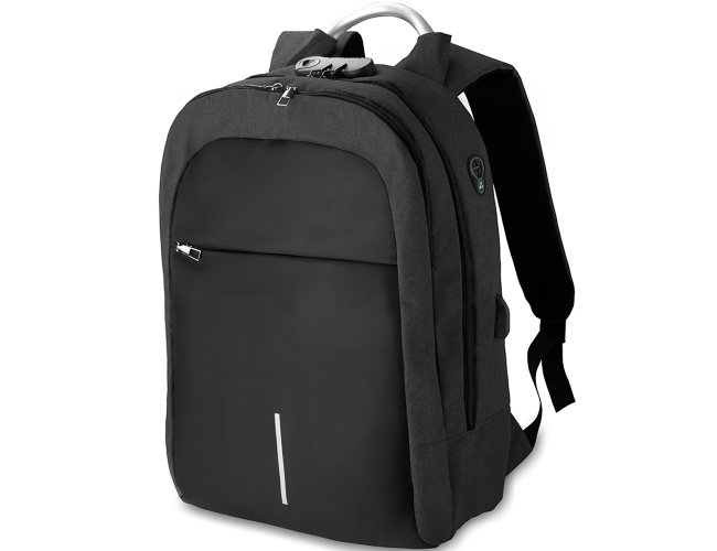 Mochila Personalizada de Poliéster AVMC138, confeccionada em tecido externo de poliéster 300D e tecido interno em poliéster 210D. Possui fechamento em cadeado com segredo, bolso frontal com zíper, faixa reflexiva na parte frontal, saída USB e para fone de ouvido. Conta com alça de mão em metal, alça de ombro acolchoada, engate para mala de viagem e dois grandes compartimentos com fechamento em zíper, sendo um para pequenos e outro específico para notebook de até 15,6”. MEDIDA: Altura: 43 cm X Largura: 29 cm X Profundidade: 14 cm. Peso Aproximado (g): 624