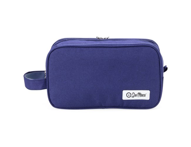 Necessaire Personalizada de Poliéster XV18873: prática, resistente à água e ideal para viagens e rotina. São 3 compartimentos — um com divisórias, outro com dois bolsinhos e o principal amplo com tela — para acomodar de maquiagem e cremes a itens de higiene, escova de dente e até toalha de mão. Compacta, cabe fácil em mochilas e malas, com alça de mão e alça para chaves. Painel emborrachado dedicado à personalização.
