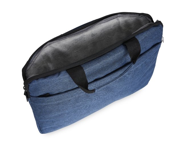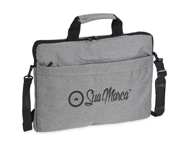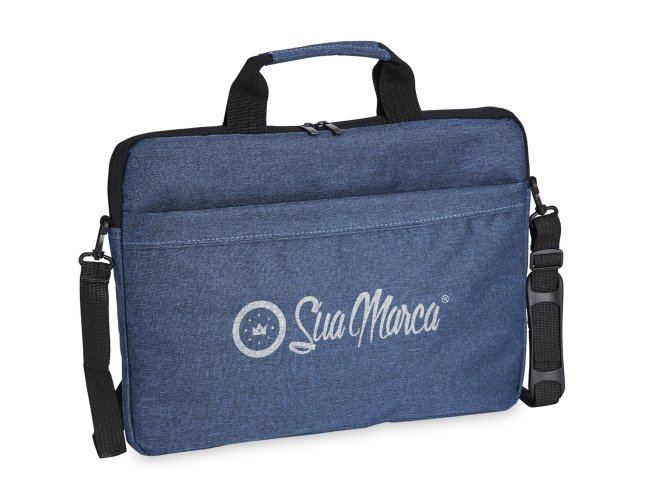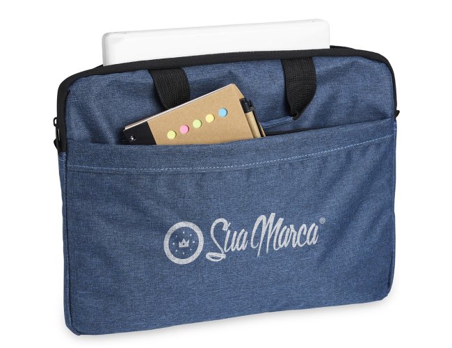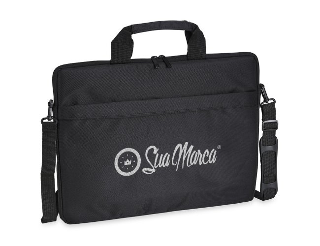 Pasta para Notebook Personalizada XV04088, ideal como brinde corporativo. Em poliéster resistente à água, comporta notebooks até 15.6”, com dois compartimentos acolchoados, alça para mala de viagem e alça transversal. Proteção e estilo para sua marca ganhar destaque junto a clientes e parceiros.