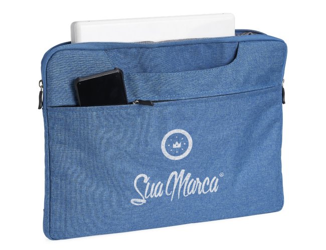 A Pasta para Notebook Personalizada XV04090 é ideal para notebooks até 15?. Confeccionada em poliéster resistente à água, possui dois compartimentos, interior almofadado e forrado, além de engate prático para malas de viagem. Uma excelente opção de brinde personalizado corporativo para encantar clientes e colaboradores.